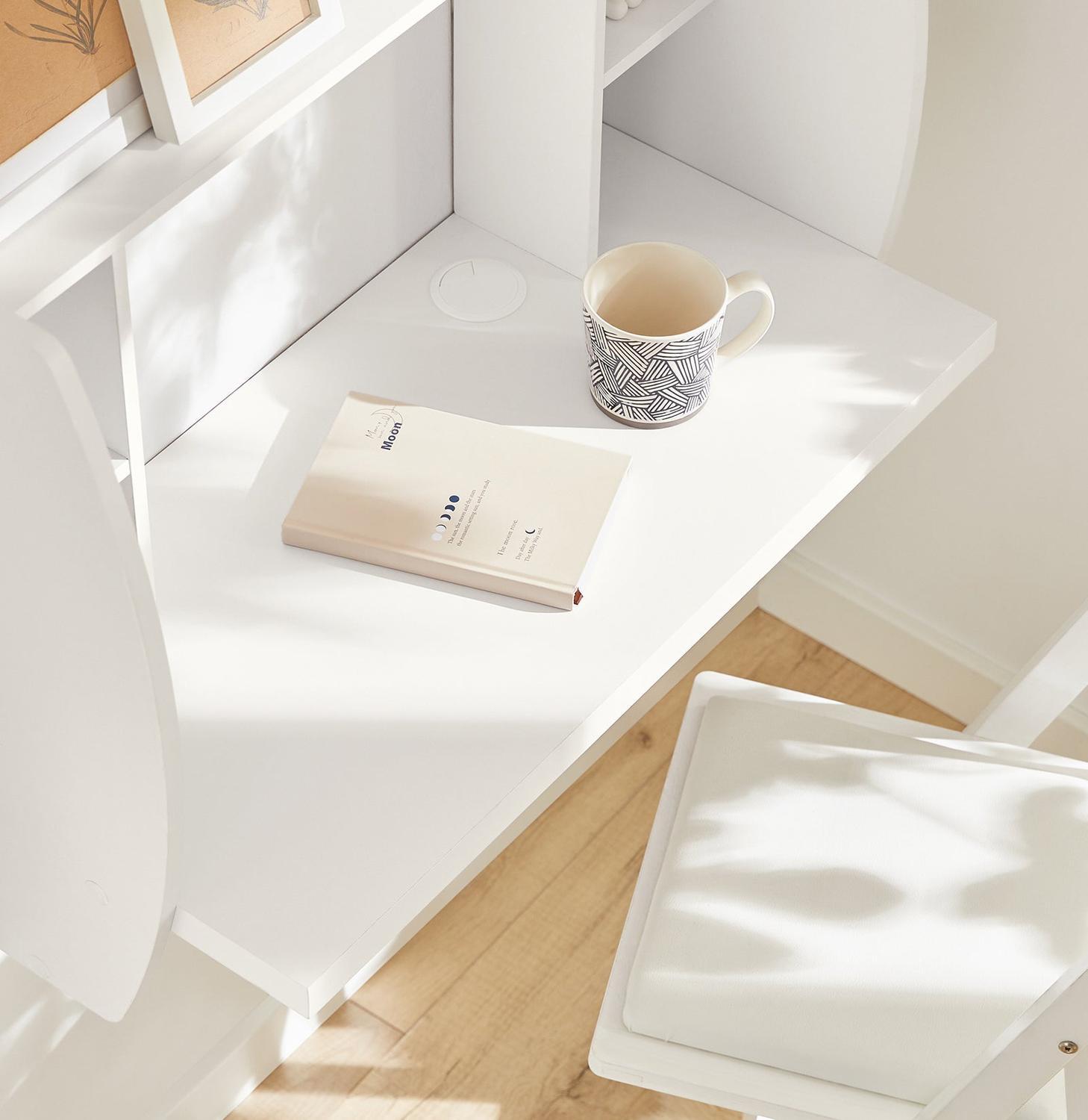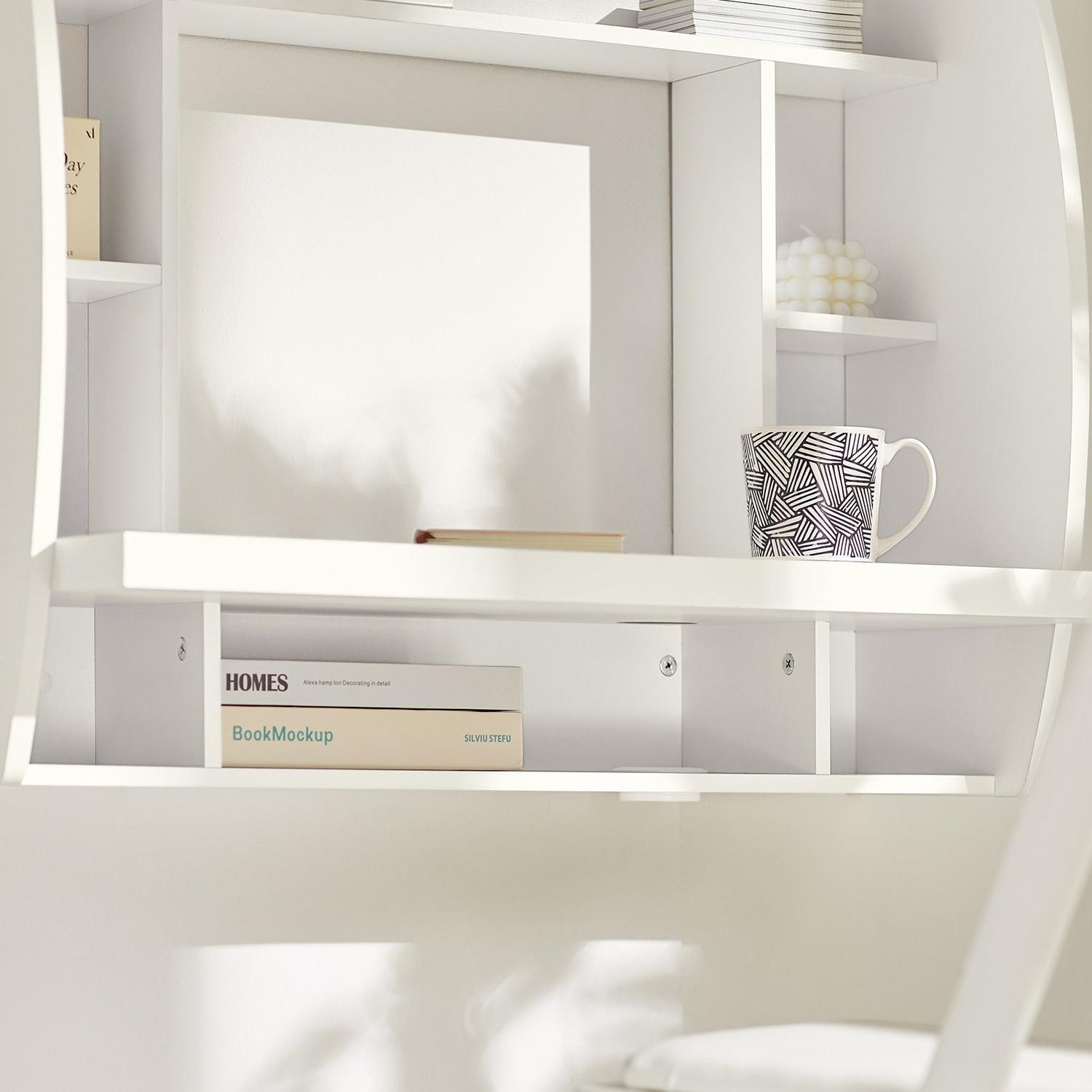 Sieninis rašomasis stalas 82x39x60cm, baltos spalvos, yra puikus pasirinkimas tiems, kurie ieško funkcionalumo ir stiliaus derinio. Jo paprastos ir elegantiškos linijos leidžia lengvai derinti su įvairiais interjero stiliais.