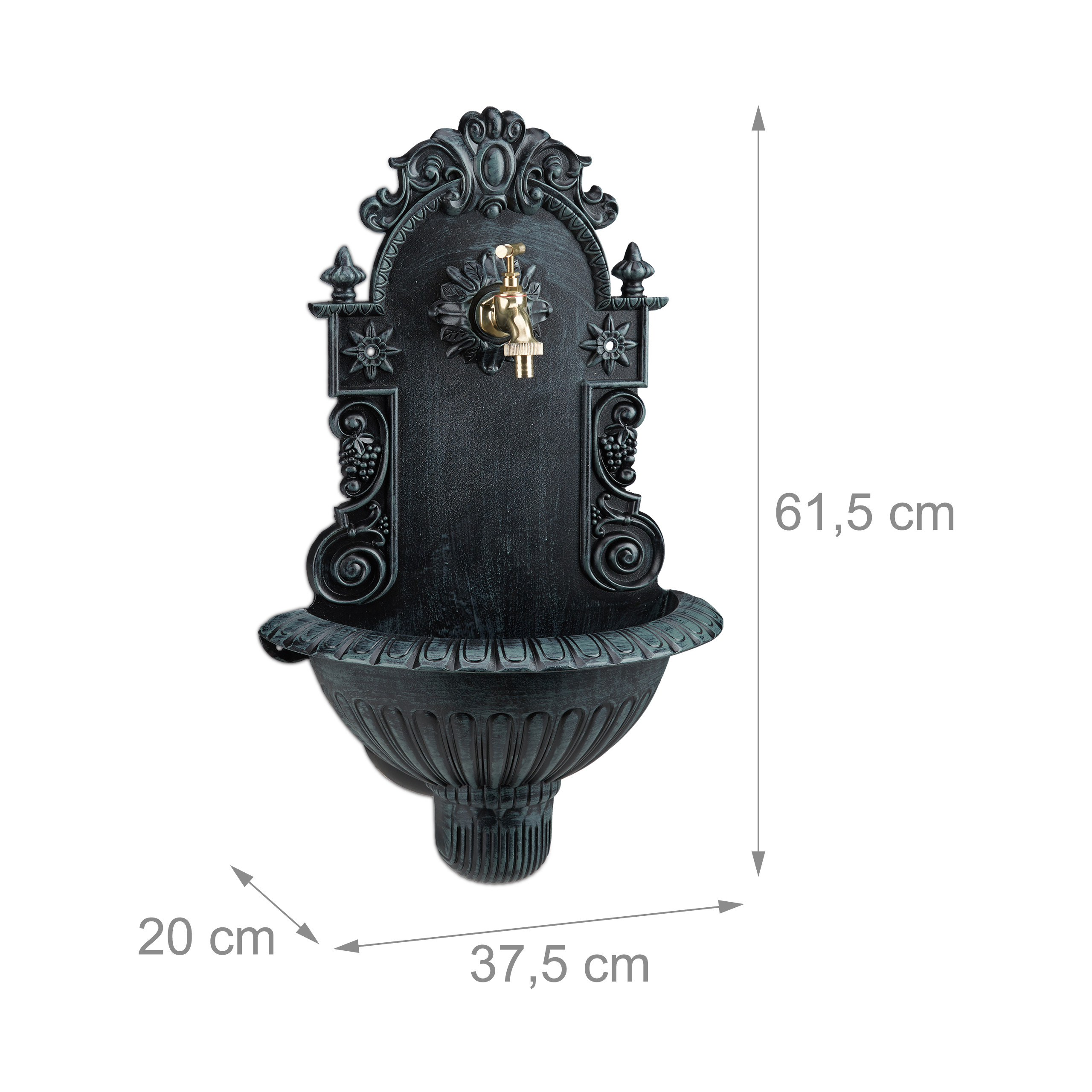 Įneškite elegancijos ir funkcionalumo į savo sodą ar terasą su šiuo dekoratyviniu antikinio stiliaus sieniniu fontanu. Šis nostalgiškas fontanas ne tik suteikia galimybę patogiai naudotis vandeniu, bet ir tampa išskirtiniu jūsų lauko erdvės akcentu.