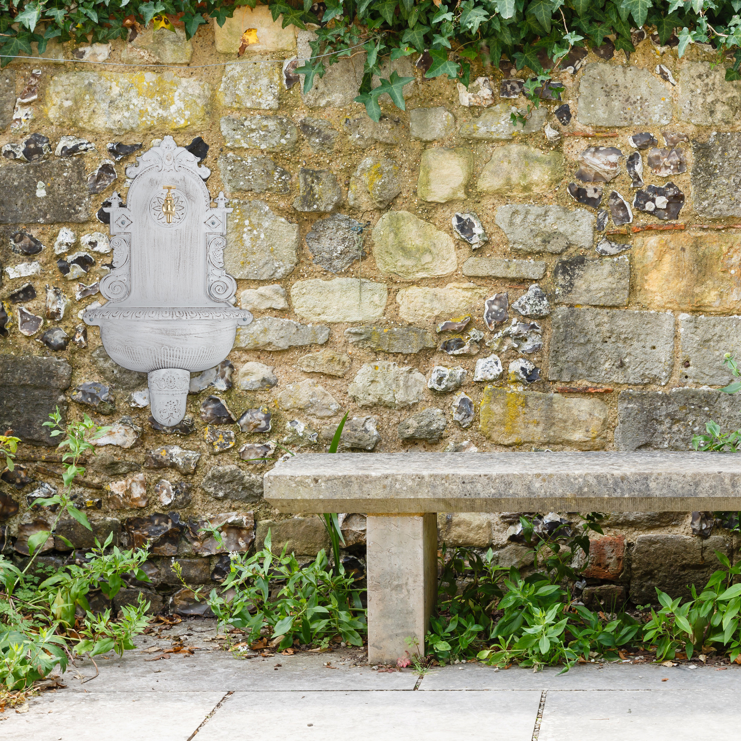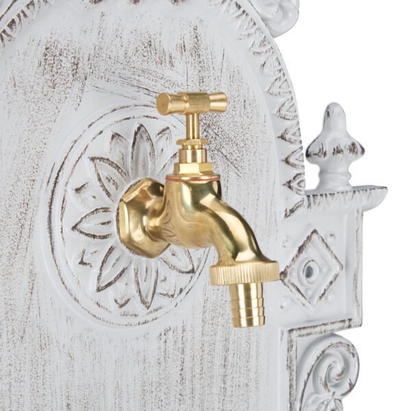 Praturtinkite savo sodą ar terasą elegancija ir funkcionalumu su šiuo išskirtiniu sieniniu sodo fontanu. Jo senovinė išvaizda ir subtilus baltos bei auksinės spalvų derinys suteiks jūsų aplinkai prabangos ir rafinuotumo.