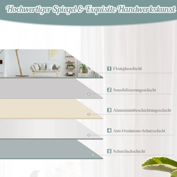 - Daugiasluoksnis flotacinis stiklas su aliuminiu sluoksniu užtikrina didelės raiškos vaizdą be iškraipymų.