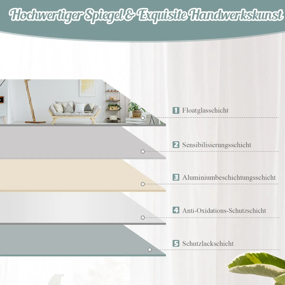 - Didelis 110 x 38 cm dydis leidžia matyti pilną kūną ir patogiai rengiantis įvertinti išvaizdą.