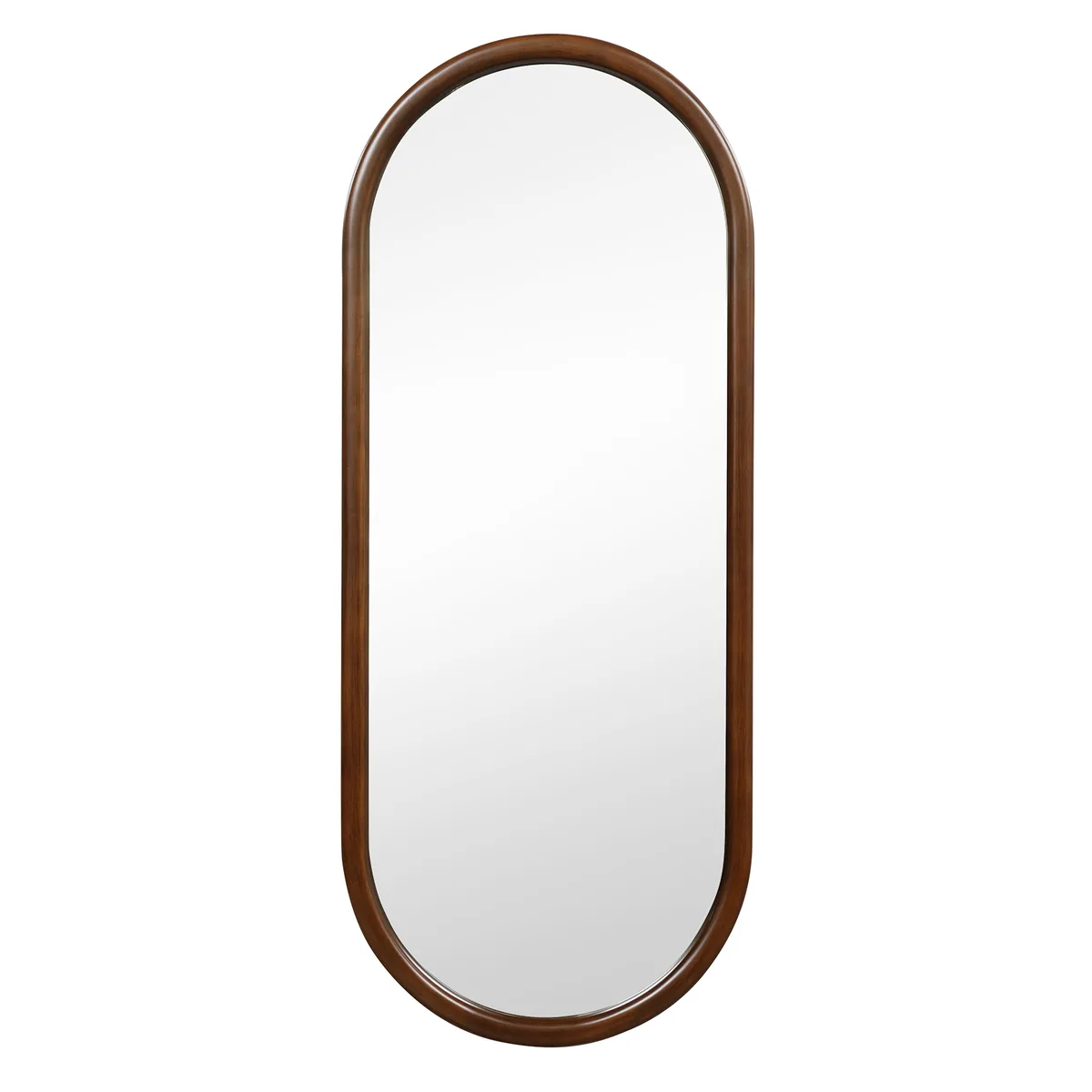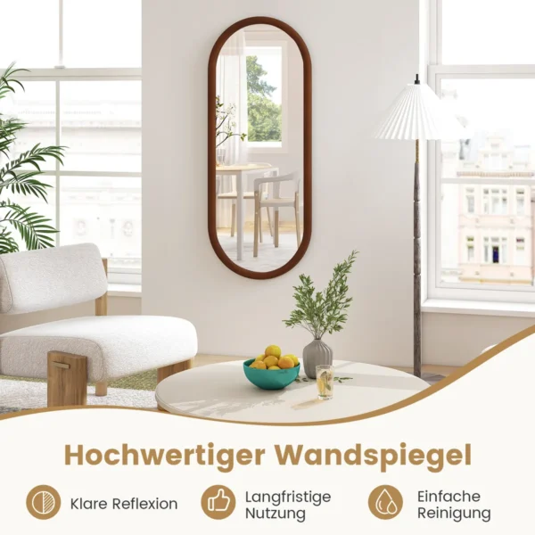 - Ovalus, pakabinamas sieninis veidrodis su riešuto spalvos medžio masyvo rėmu.