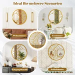 - Apvalus sieninis veidrodis su netaisyklingo dizaino auksiniu MDF rėmu