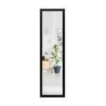 Sieninis veidrodis 33x120cm, juodos spalvos, yra puikus sprendimas patikrinti savo išvaizdą visu ūgiu. Tinkamas kabinti tiek ant sienos, tiek ant durų, šis veidrodis tinkamai atspindi vaizdą be iškraipymų ir užtikrina saugumą dėl nedūžtančio stiklo ir patvaraus PS rėmo.