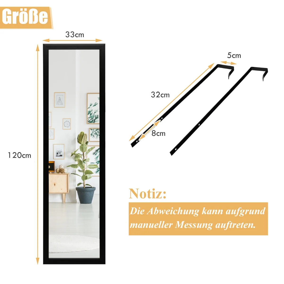 - Viso ūgio veidrodis 33 x 119 cm (ilgis x plotis) leidžia patikrinti visą kūną prieš išeinant.