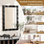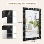 Sieninis veidrodis 3x106x71,5cm juodos spalvos puikiai tinka įvairių patalpų interjerui. Natūralaus gumos rėmo veidrodis su MDF pagrindu užtikrina patvarumą ir ilgalaikį naudojimą. Dėl galimybės kabinti tiek horizontaliai, tiek vertikaliai, jis pritaikomas skirtingoms erdvėms.