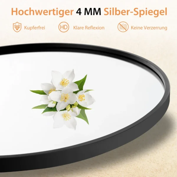 - Su 4 mm storio nedūžtančiu sidabro veidrodiniu stiklu, užtikrinančiu aiškų ir be iškraipymų atspindį.