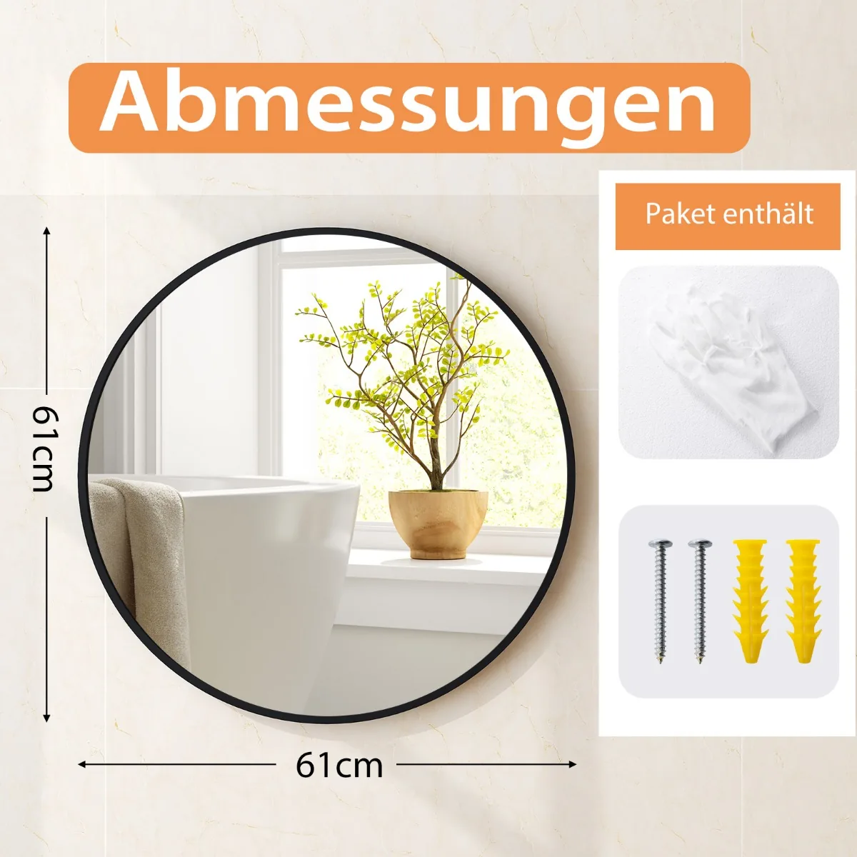 - Apvalios formos veidrodis su 61 cm skersmeniu ir 2,5 cm rėmo gylio profiliu.