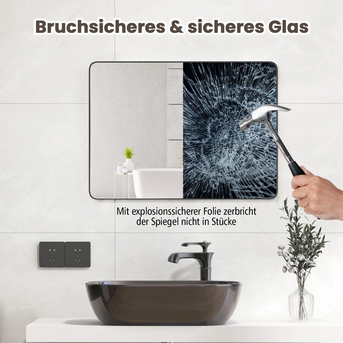- Užapvalinti veidrodžio kampai ir sprogimui atspari plėvelė užtikrina naudojimo saugumą.
