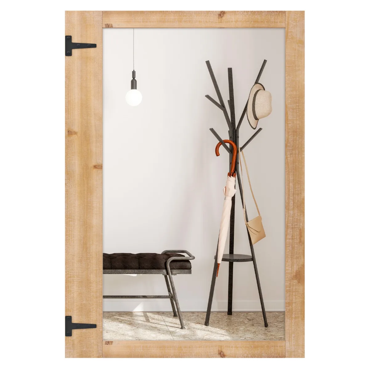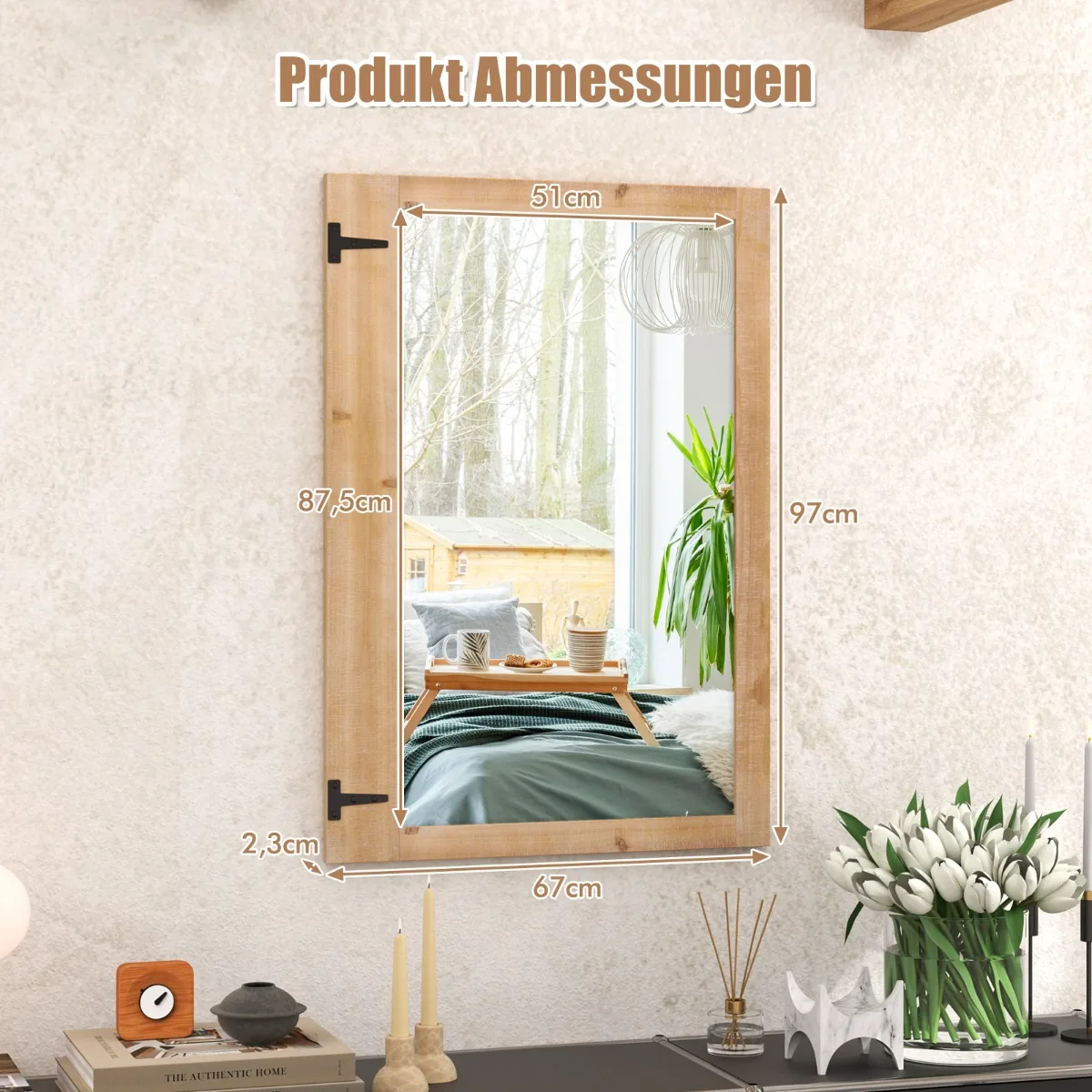 Sieninis veidrodis 97x67x2,3cm šviesiai rudos spalvos puikiai tinka interjero papildymui tiek svetainėje, tiek miegamajame ar prieškambaryje. Natūralaus medžio masyvo rėmas su T formos metaline apdaila suteikia natūralų ir jaukų vaizdą. Veidrodis aiškiai atspindi, todėl yra praktiškas kasdieniam naudojimui.