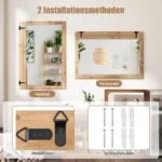 - Metalinių kabliukų dėka veidrodis lengvai pritvirtinamas prie sienos.