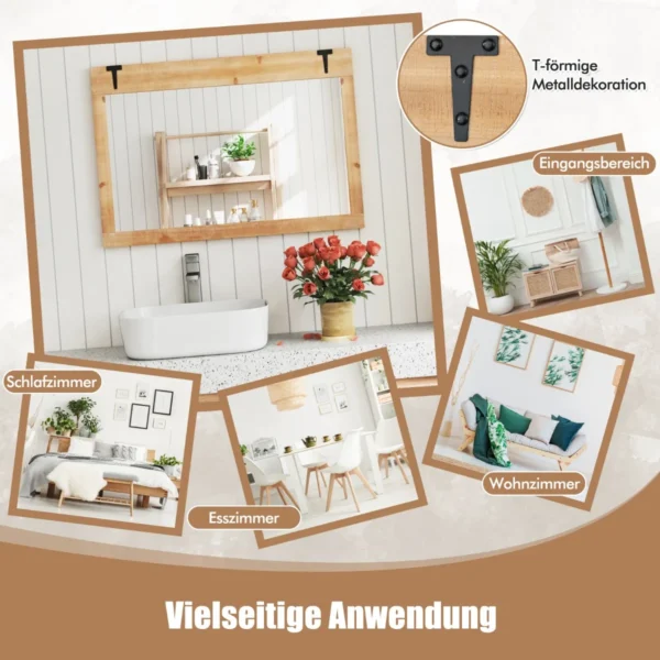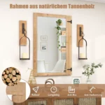 - Veidrodis su natūralaus eglės medžio masyvo rėmu ir T formos metalo apdaila.