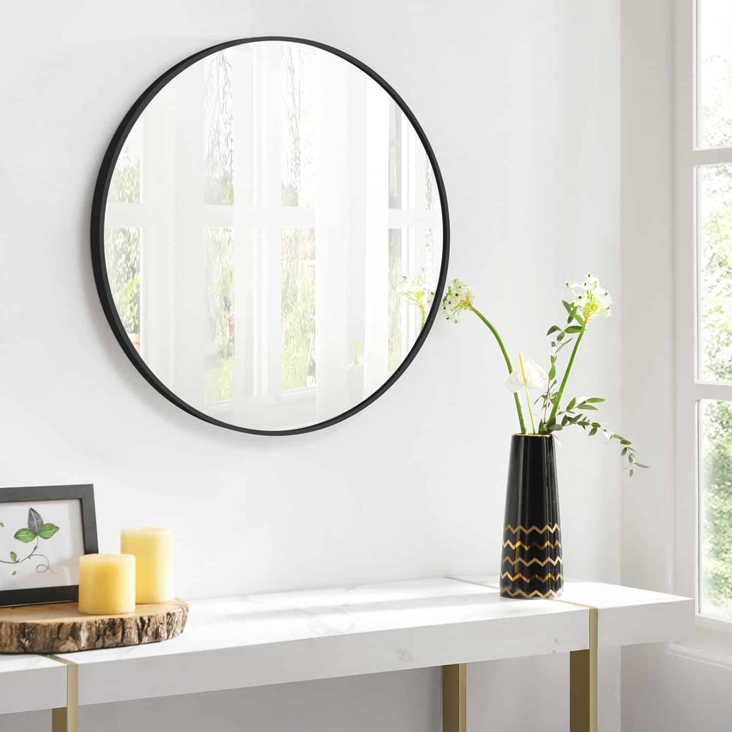 Tinka bet kokiam kambariui: paimkite apvalią formą ir pridėkite aukso spalvos metalinį rėmą. Rezultatas? Paprastas, bet prašmatnus apvalus veidrodis, kuris lengvai įsilies į bet kurį kambarį ir papildys jūsų įėjimo, miegamojo ar vonios kambario išvaizdą.