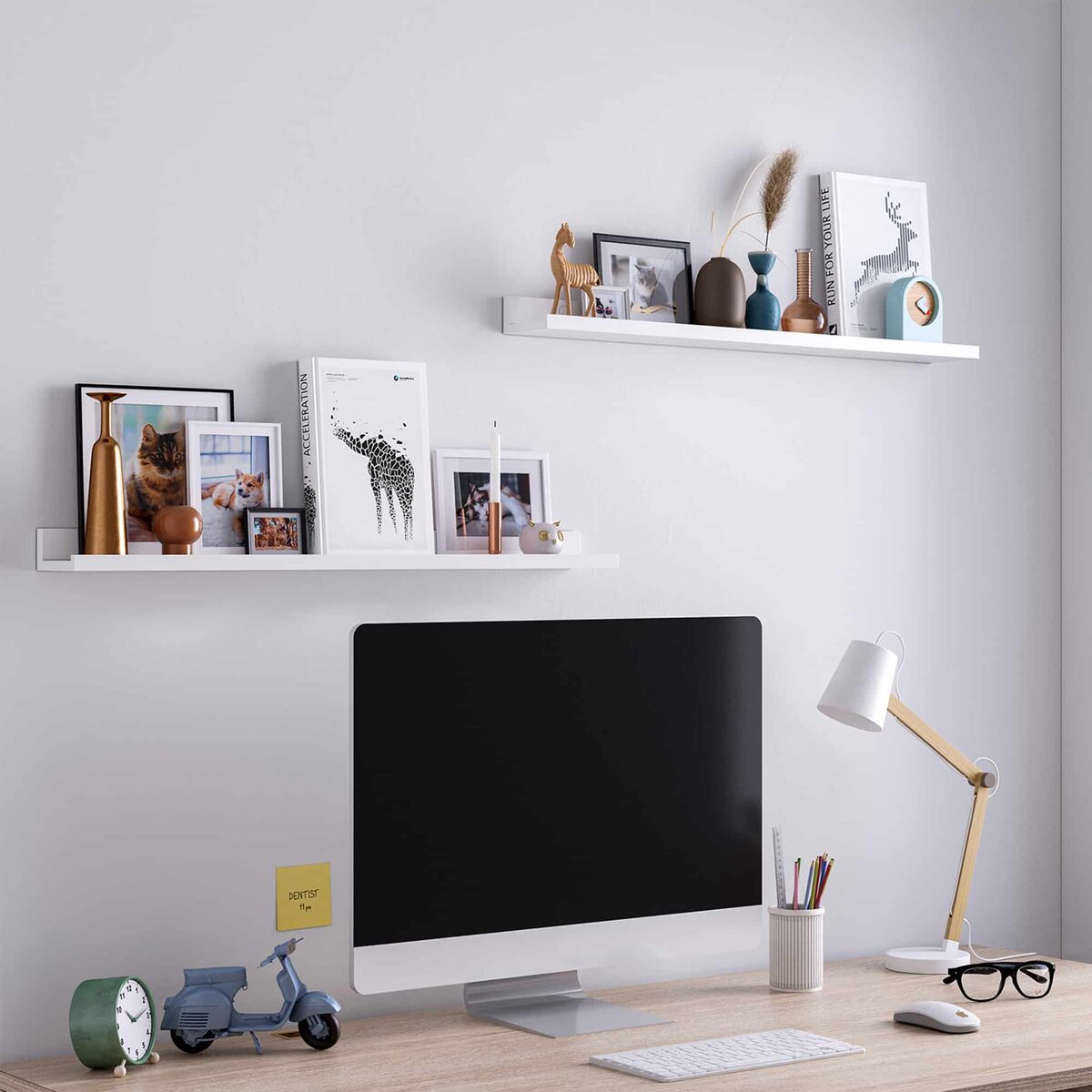 Ant šių stilingų sieninių lentynų galite tinkamai apšviesti dekoratyvinius daiktus, sukulentus ir paveikslų rėmus. Lengvai paįvairinkite savo namus! Miegamajame šias sienines lentynas pritvirtinkite prie lovos, kad galėtumėte pasidėti laikrodį, akinius ar kvapiąsias žvakes. Paaukštinti kraštai neleidžia šiems daiktams nuslysti. Ir dar daugiau. Šios plaukiojančios lentynos idealiai tinka jūsų valgomajame, vonios kambaryje, biure… Sąrašas būtų per ilgas, kad čia viską surašytume, nes šios lentynos telpa visur, kur yra sienos.