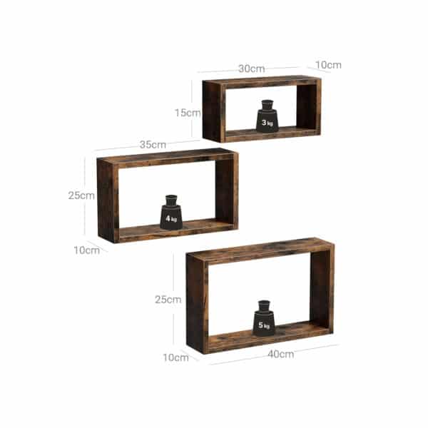 Mes stiprūs: Nestabilias lentynas nustumkite į šalį! Pagamintos iš E1 klasės inžinerinės medienos, šios plaukiojančios lentynos yra pakankamai tvirtos knygoms ir vazoniniams augalams.