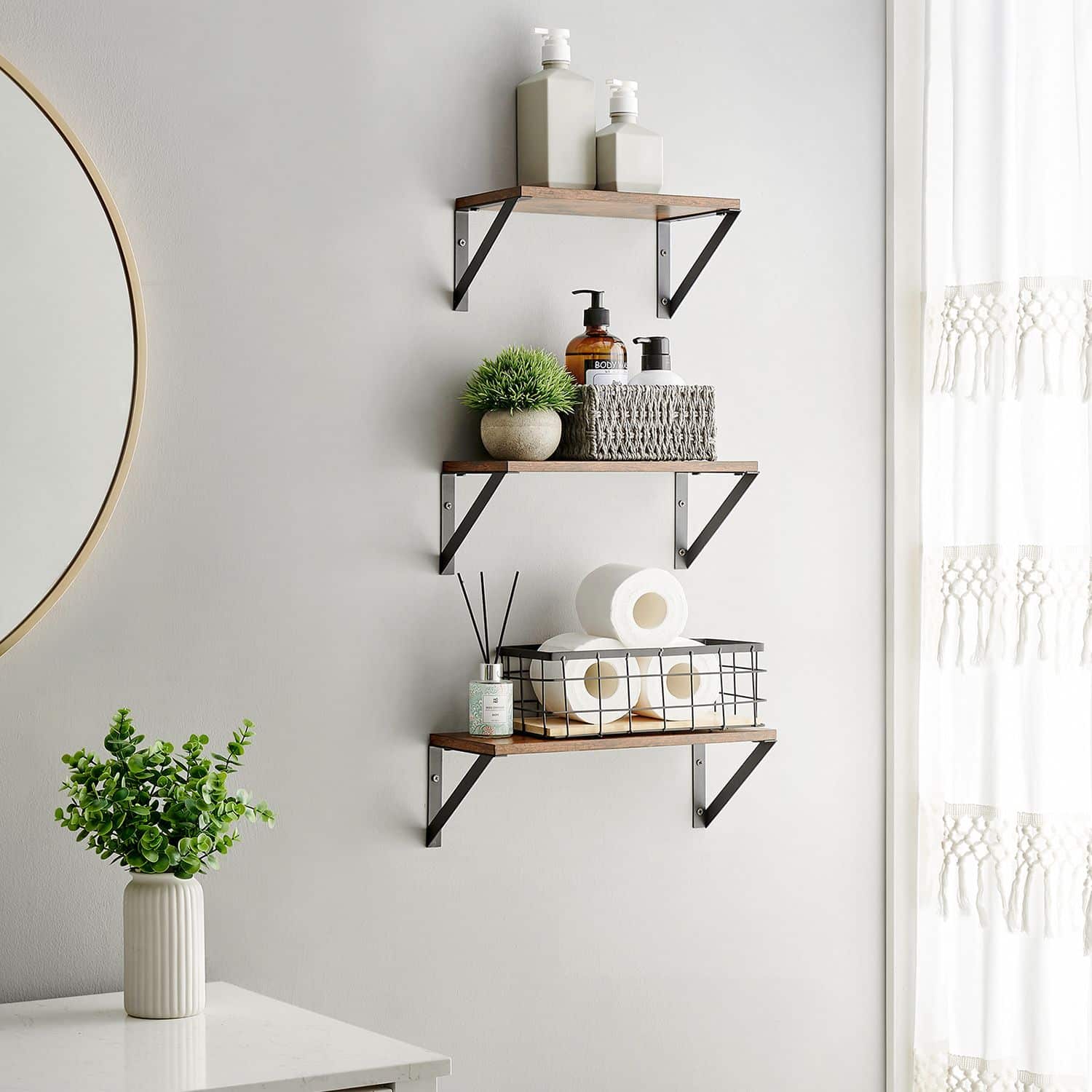 Trūksta sandėliavimo vietos ant grindų? Nukreipkite dėmesį į savo sienas! Su šiuo sieninių lentynų rinkiniu, kurį sudaro 3 plaukiojančios lentynos, galėsite išdėlioti paveikslų rėmus miegamajame, pasidėti muilo indus ir higienos reikmenis vonios kambaryje arba laikyti prieskonių indelius virtuvėje. Naudokite jas taip, kaip norite. Išdėstykite 3 lentynas viršuje arba apačioje, naudokite kartu ar atskirai, montuokite savo virtuvėje ar svetainėje – visiškai pagal Jūsų pageidavimus!