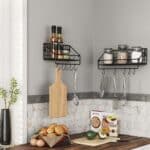 Daugiau vietos jūsų butui: ar jūsų virtuvė per maža? Ar jūsų virtuvės stalviršis netvarkingas? Pakabinkite šias lentynas ant sienos ir tvarkingai sudėkite ant jų tokius prieskonius kaip kario milteliai, čiobreliai, kmynai ir rozmarinai. Ant 10 kabliukų taip pat galite pakabinti valymo skudurus ir kitus reikmenis.
