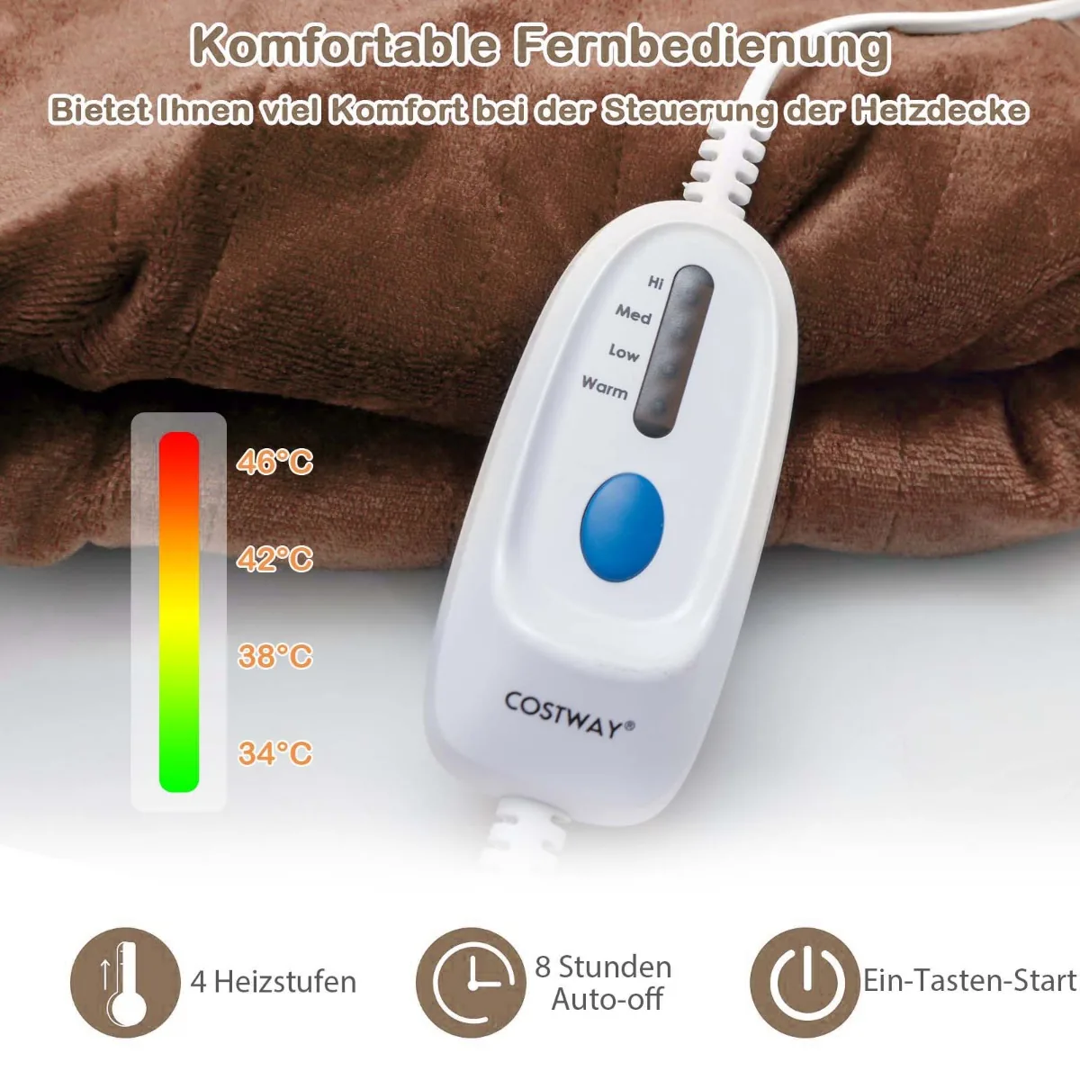 Šildanti antklodė 130×180 cm rudos spalvos – patogus sprendimas šaltoms dienoms užtikrinti komfortišką ir efektyvų šilumos palaikymą. Elektrinė antklodė su flaneliniu paviršiumi ir kelių lygių šildymo nustatymais puikiai pritaikoma skirtingiems poreikiams.