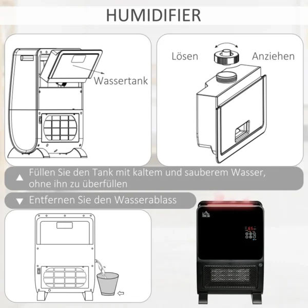 Būkite patogiai šilti šaltomis žiemos popietėmis ir naktimis su šiuo HOMCOM šildytuvu ir drėkintuvu. Naudokite jį ne tik kaip šildytuvą žiemą, bet ir kaip drėkintuvą vasarą ar rudenį. Jis taip pat gali būti naudojamas kaip oro filtras su UV šviesa. Šį šildytuvą paprasta naudoti ir jis puikiai tinka jūsų namuose ir biure. Jis turi 3 režimus, kad patenkintų skirtingus poreikius, ir turi GS sertifikatą.