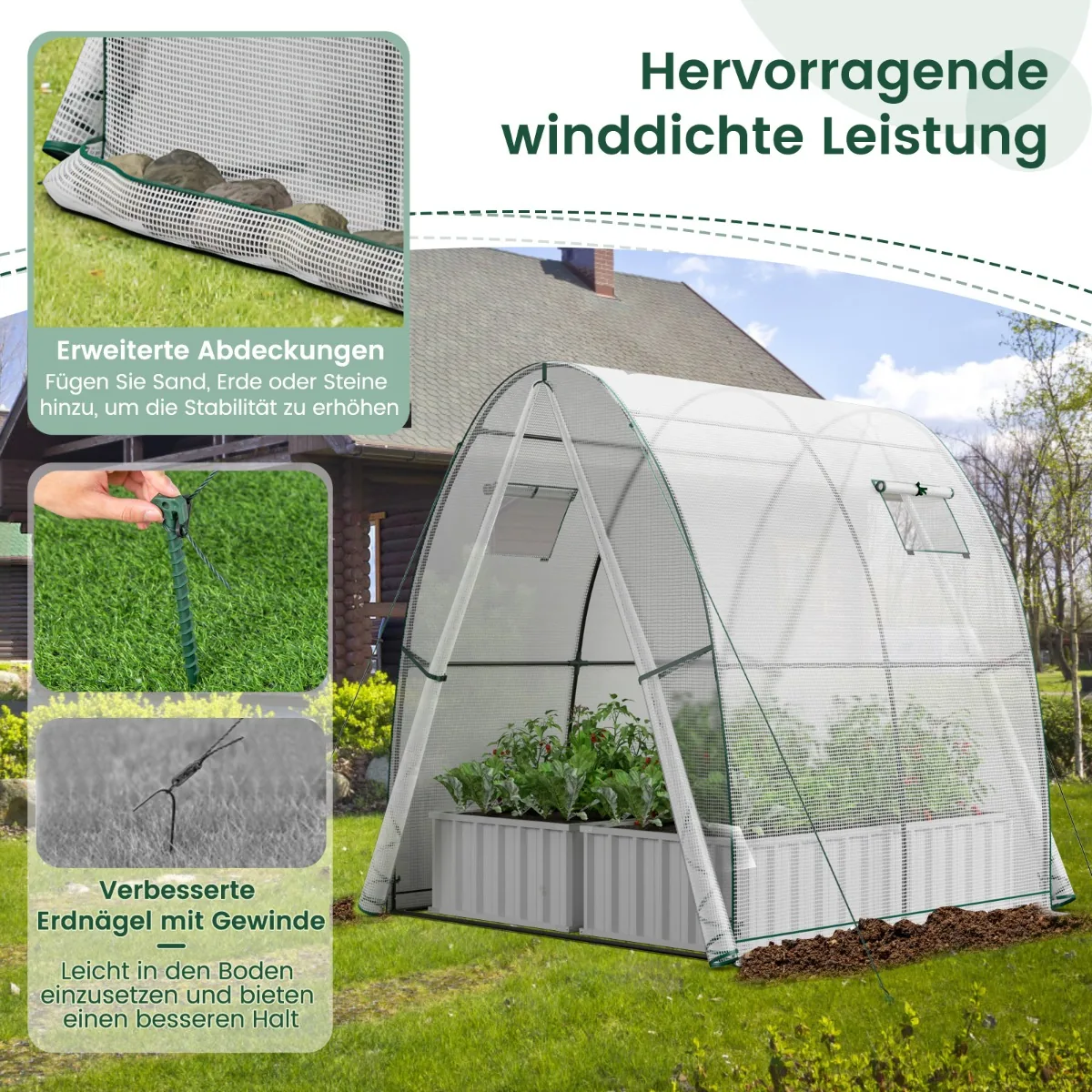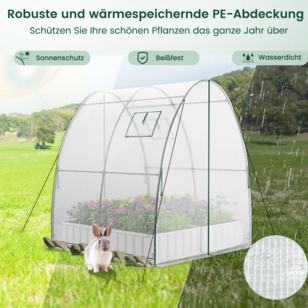 Šis baltos spalvos šiltnamis (181x181x200cm) sukuria tinkamas sąlygas augalų auginimui ištisus metus. Nešiojamas tunelinis šiltnamis yra erdvus, patvarus ir lengvai prižiūrimas, todėl tinka įvairių daržovių, vaisių, žolelių ar gėlių auginimui.