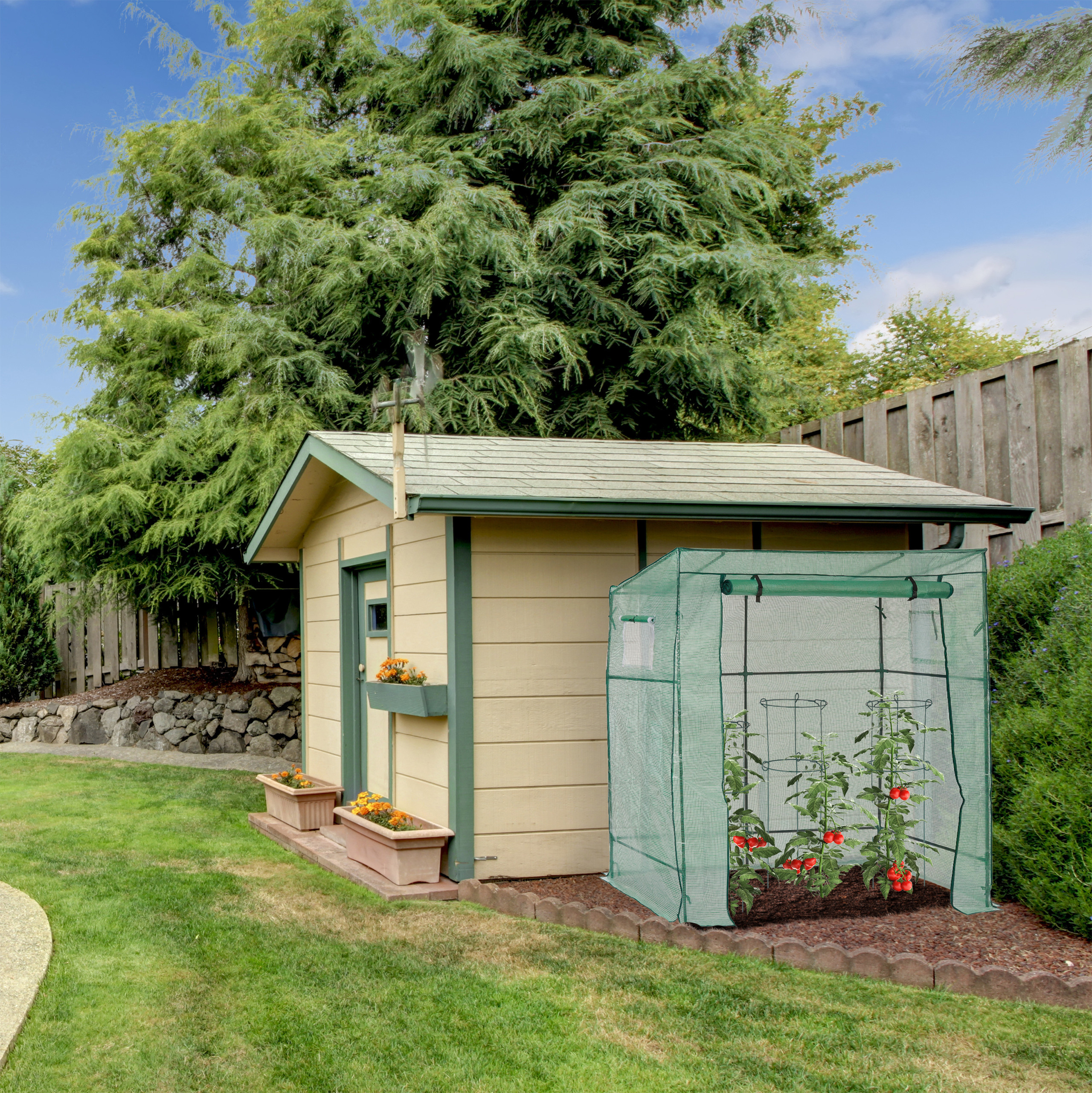 Praturtinkite savo sodą skaniais, namuose užaugintais pomidorais su šiuo dideliu pomidorų šiltnamiu, skirtu mėgėjams sodininkams. Sukurkite idealias sąlygas, kurias mėgsta auksinis obuolys: šiltą ir sausą aplinką, kurią užtikrina šis tvirtas ir patikimas šiltnamis.