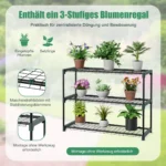 - 3 pakopų gėlių lentyna (90 x 30,5 x 65,5 cm) patogiam vazoninių augalų laikymui ir tręšimui.