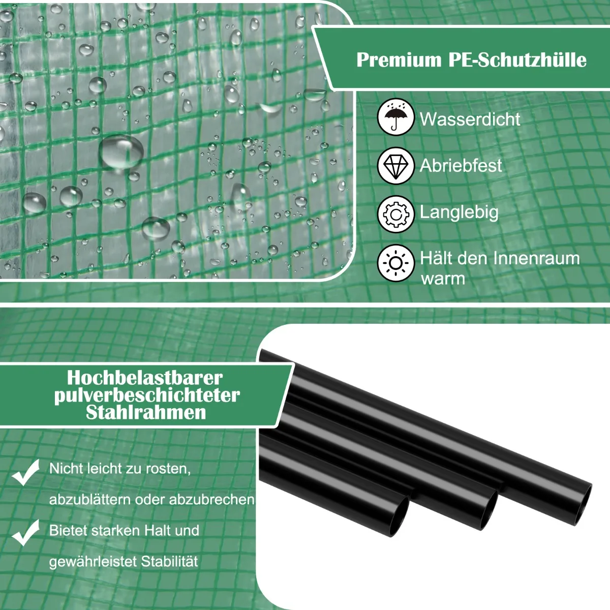 - Apsauginis dangtelis pagamintas iš veiksmingos saulės apsaugos ir vandeniui atsparios PE medžiagos.