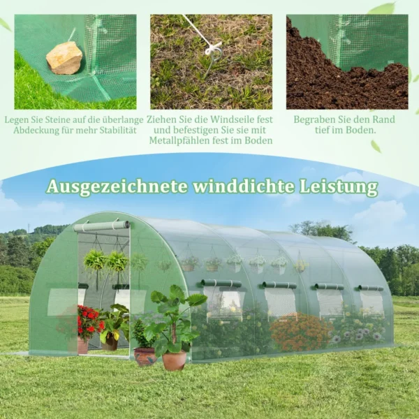 - Galimybė pritvirtinti vėjo lynus ir metalinius kaiščius užtikrina šiltnamio stabilumą.