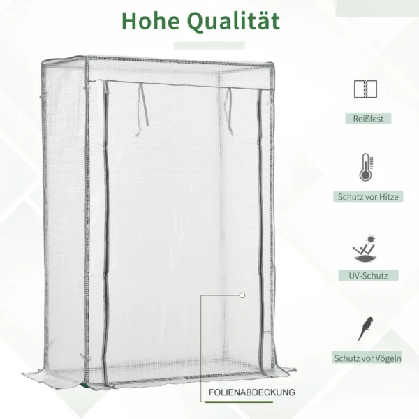 Šis aukštas ir siauras Outsunny šiltnamis yra puikus pasirinkimas jūsų sodui, balkonui ar ankštoms erdvėms auginti augalus taupant vietą. Tvirtas plieninis rėmas ir patvarus plastikinis pomidorų namelio dangtis užtikrina tvirtumą ir patikimumą. Šis šiltnamis gali padėti jūsų augalams geriau augti, o sodininkystė taps lengvesnė ir įdomesnė.
