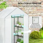 Nustokite jaudintis dėl meiliai prižiūrimų augalų! Outsunny šiltnamis su integruotu augalų stovu yra idealus sprendimas mėgėjams sodininkams. UV atsparus plastikinis užvalkalas su susukamomis durelėmis ir dviem tinkliniais pomidorų namelio langais optimaliai reguliuoja temperatūrą ir drėgmę. Reguliuojamos plėvelinio šiltnamio vielinės plokštės taip pat leidžia lanksčiai projektuoti interjerą, priklausomai nuo augalų aukščio.