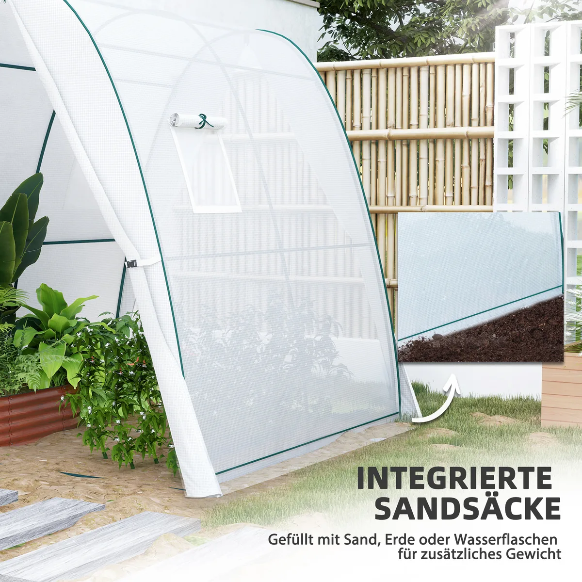 • ✔ Idealus plėvelinis šiltnamis, skirtas sodinti ištisus metus, apsaugo augalus nuo stichijų