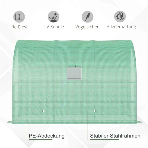 Įeinamas Outsunny sodo šiltnamis idealiai tinka sodininkams pomėgiams. Tai optimaliai apsaugo jūsų augalus ir skatina jų augimą. Su stabiliu karkasu ir plastikiniu plėvelinio šiltnamio dangčiu augalai ir daržovės yra saugiai apsaugoti nuo oro poveikio. Vėdinimo tinkleliai ant šalto rėmo langų taip pat užtikrina optimalią oro cirkuliaciją. Mėgaukitės stebėdami, kaip jūsų augalai klesti ištisus metus.