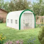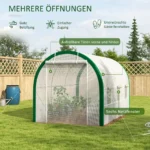 Dėl šio Outsunny tunelinio šiltnamio nuimkite gausų derlių, nepaisant oro sąlygų. Erdvus interjeras suteikia pakankamai vietos jūsų augalams, o atviras dizainas leidžia jį pritaikyti pagal savo pageidavimus. Dėl susukamų užtrauktuku durų ir šešių tinklinių langų jis leidžia lengvai pasiekti ir optimaliai vėdinti pasėlius. Patvarus, cinkuoto plieno karkasas užtikrina maksimalų stabilumą.