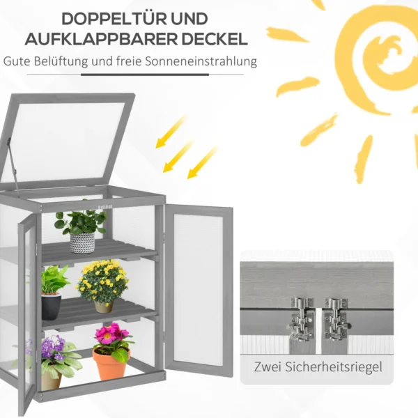 Lengvai užsiauginkite savo nedidelį sodą šiame patogiame ir funkcionaliame Outsunny šiltnamyje. Permatomos ir tvirtos polikarbonato sienos leidžia aukštos energijos saulės šviesai netrukdomai pasiekti jūsų augalus ir sulaiko šilumą šiltnamio viduje, kad apsaugotų juos nuo šalčio. Dėl sulankstomo stogo ir erdvių dvigubų durų rūpintis augalais ypač patogu.