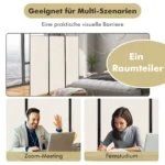Širma 262x30x180cm, smėlio ir juodos spalvos, yra praktiškas kambario daliklis, skirtas sukurti privatumo zoną ir lengvai pertvarkyti erdvę. Sulankstomas trijų skydujų ekranas turi ratukus, leidžiančius jį be vargo perkelti bet kurioje patalpoje.