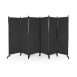 Širma 334,5x30x172cm kambario daliklis tamsiai pilkos/juodos spalvos skirtas sukurti atskirą erdvę ir pagerinti kambario išdėstymą. Šis 6 plokščių privatumo ekranas pagamintas iš poliesterio audinio su tvirtu metaliniu rėmu, užtikrinančiu patvarumą ir stabilumą.