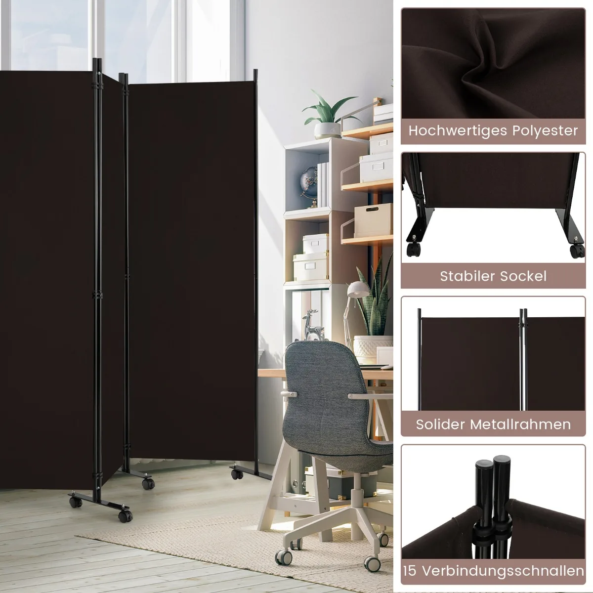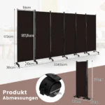 Širma 334,5x30x172cm kambario daliklis tamsiai rudos ir juodos spalvos yra efektyvus sprendimas namų ar biuro erdvės padalijimui. Šis 6 plokščių privatumo ekranas suteikia galimybę lengvai sukurti atskiras zonas bei apsaugoti nuo tiesioginių saulės spindulių.