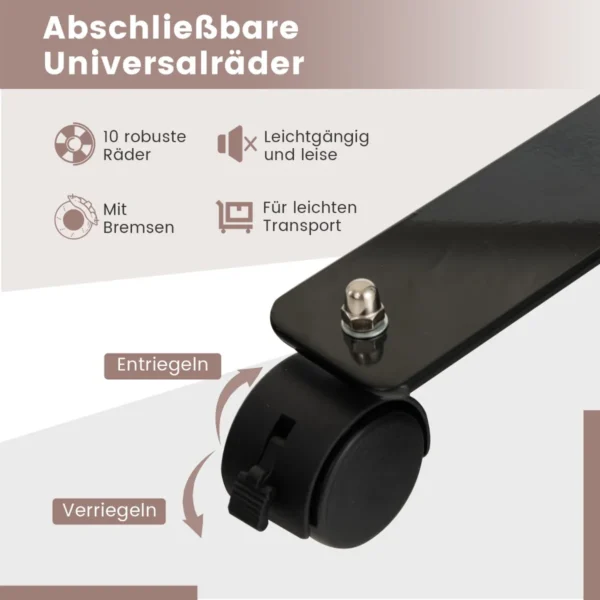 - 14 lanksčių ratukų užtikrina sklandų judėjimą bei rakinami ratukai fiksuoja vietą.