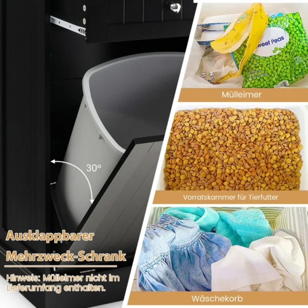 - Ištraukiamos durelės talpina iki 42 litrų talpos šiukšliadėžę, kurios kvapas yra suplėšomas ir saugomas nuo augintinių.