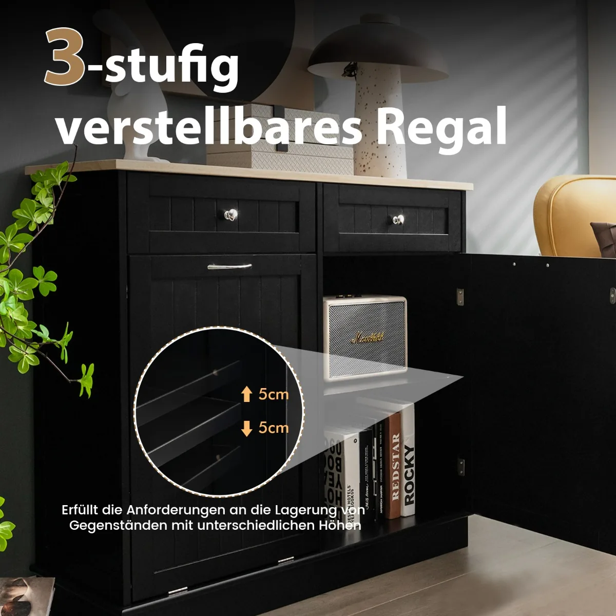 Šiukšliadėžė 100×35,5x90cm juodos ir šviesiai rudos spalvos – praktiškas ir universalus sprendimas šiukšlių, skalbinių ar naminių gyvūnėlių reikmenų laikymui. Dėl tvirtos konstrukcijos ir erdvaus stalviršio šiukšliadėžė puikiai tinka virtuvei, svetainei ar koridoriui.