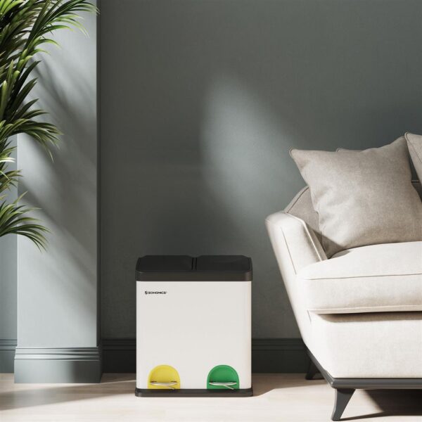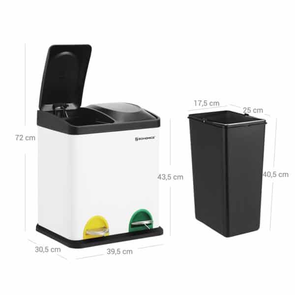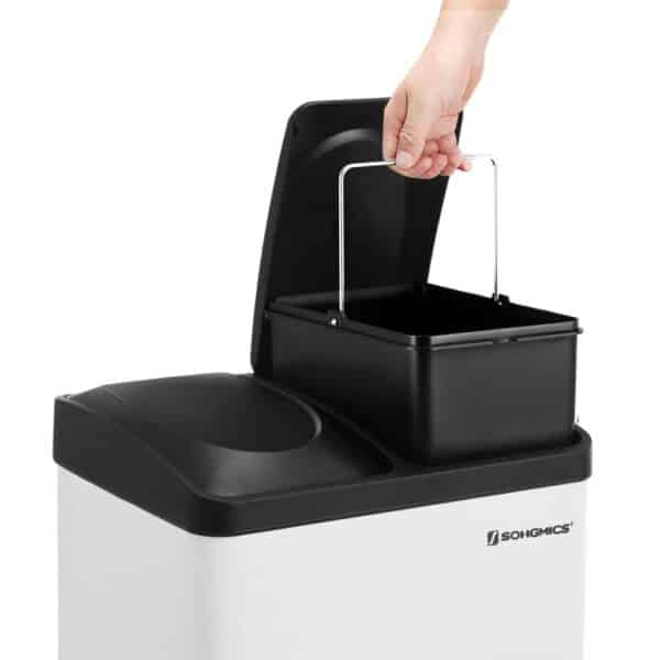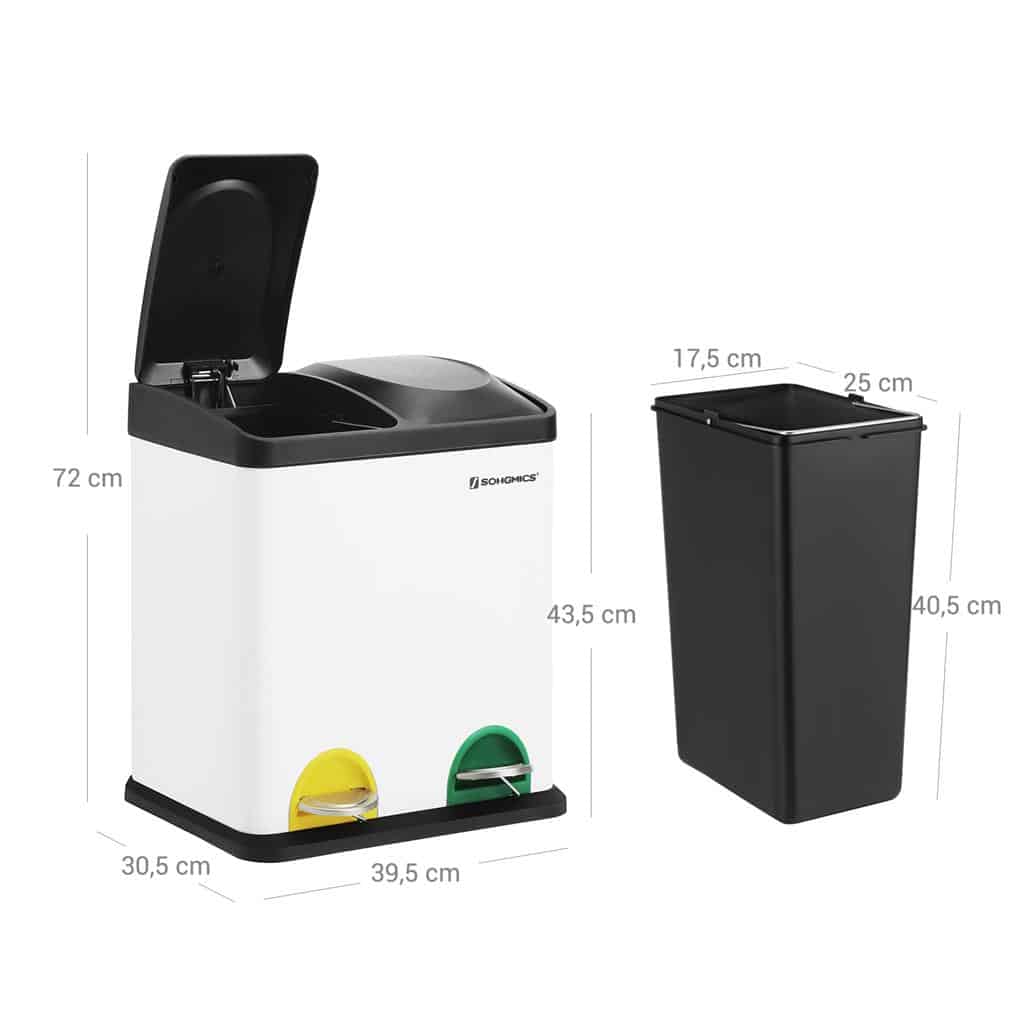 Ši 30 litrų šiukšliadėžė iš SONGMICS yra puikus pasirinkimas jūsų virtuvei, nes ji leidžia lengvai rūšiuoti atliekas. Dėžė turi du atskirus skyrius, kurie padeda atskirti likutines ir organines atliekas. Spalvoti kojiniai pedalai padeda lengvai identifikuoti skyrius, o tai palengvina atliekų rūšiavimą.
