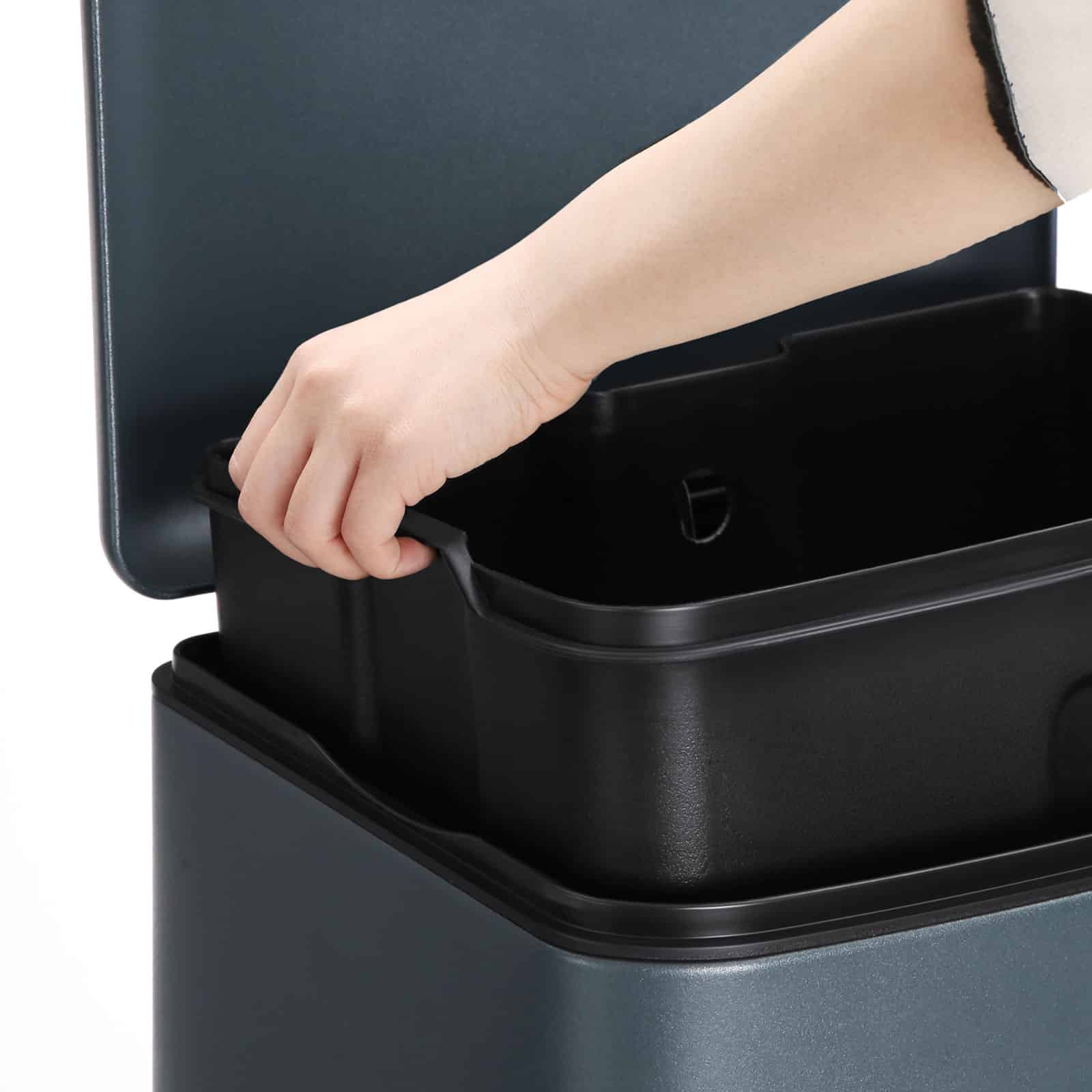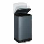 Perdirbimas gali būti paprastas: tereikia paspausti pedalą ir išmesti atliekas į vidinę šiukšliadėžę. Nereikia net ranka liesti šiukšliadėžės – tai užtikrina higieną. Be to, jums nereikės jaudintis, kad jūsų šuo išverstų šiukšliadėžę ir visos virtuvės atliekos atsidurtų ant grindų. Dangtis atsidaro tik paspaudus pedalą.