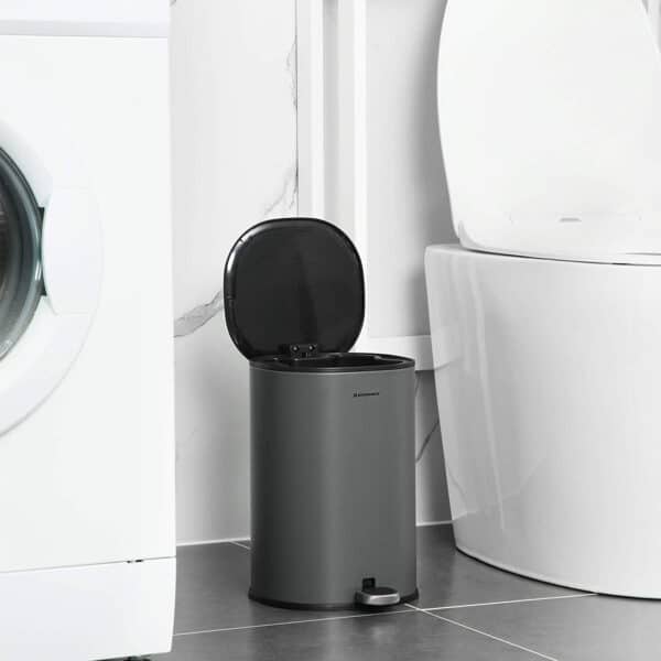 Ši 5 litrų talpos šiukšliadėžė yra sumanaus dizaino ir tvirta. Unikalios formos vidinis kibiras palengvina išėmimą, o galinė anga neleidžia šiukšlių maišui paslysti. Rankena padeda perkelti jį iš vienos vietos į kitą neliečiant šiukšliadėžės.