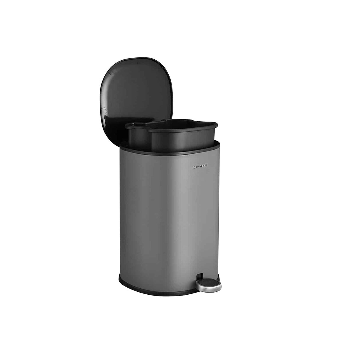 Perdirbimas gali būti paprastas! Viskas, ką jums reikia padaryti, tai paspausti kojinį pedalą, kad atidarytumėte dangtį, ir dabar turite laisvas rankas, kad galėtumėte saugoti perdirbtą medžiagą. Be to, nesijaudinsite, kad išdykę haskiai ar naminiai gyvūnai netyčia nuvers indą, nes uždarytas jis išlieka sandarus.