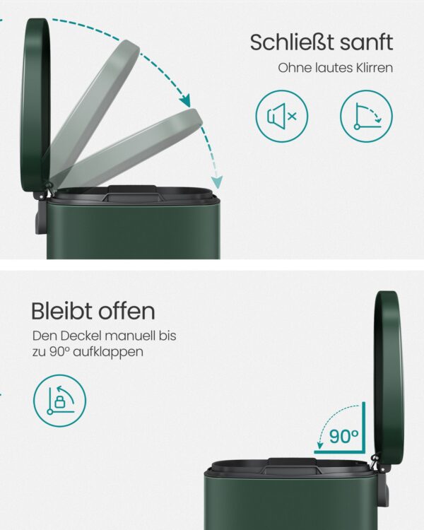 Pristatome elegantišką ir funkcionalią šiukšliadėžę, kuri puikiai tiks tiek namų, tiek biuro aplinkoje. Jos tamsiai žalia spalva suteikia vintažinį akcentą, kuris puikiai dera su įvairiais interjero stiliais.