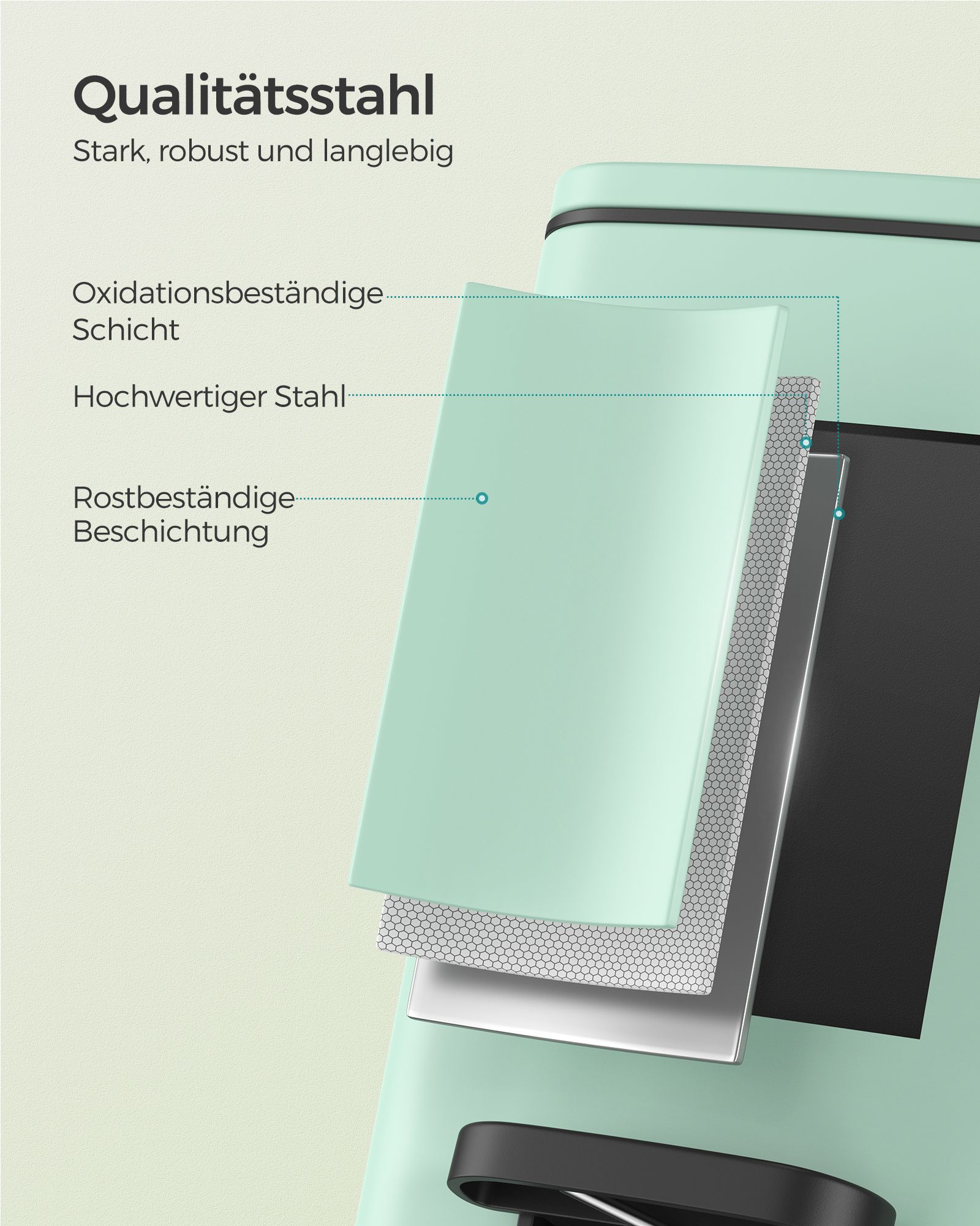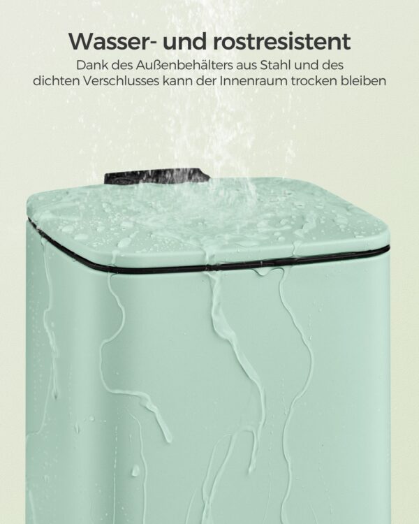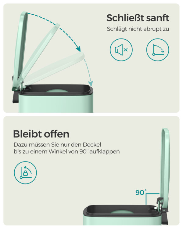 Įneškite gaivumo ir stiliaus į savo namus su šia elegantiška mėtinės spalvos šiukšliadėže. Puikiai tinka tiek virtuvei, tiek vonios kambariui, ši šiukšliadėžė ne tik funkcionali, bet ir estetiškai patraukli.