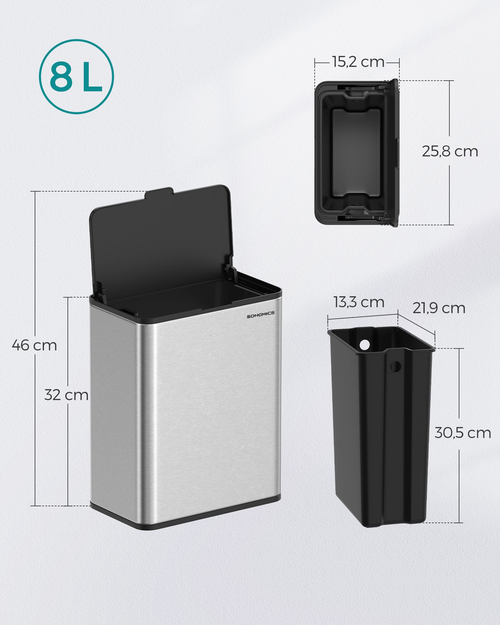 Šiukšliadėžė 8L – Sidabrinės/Juodos Spalvos