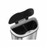 Naudojimas yra paprastas kaip 1×1: organines atliekas sudėkite į vieną skyrių, o bendras atliekas į kitą – jums net nereikia liesti šios šiukšliadėžės ranka! Viskas, ką jums reikia padaryti, tai uždėti ranką virš jutiklio ant dangčio ir jis automatiškai atsidarys. Be to, dangtis neužsidarys, kol neatimsite rankos. Jei norite, kad dangtis liktų atidarytas, tiesiog paspauskite mygtuką „OPEN“. Baigę, paspauskite mygtuką „CLOSE“, kad vėl uždarytumėte dangtį.