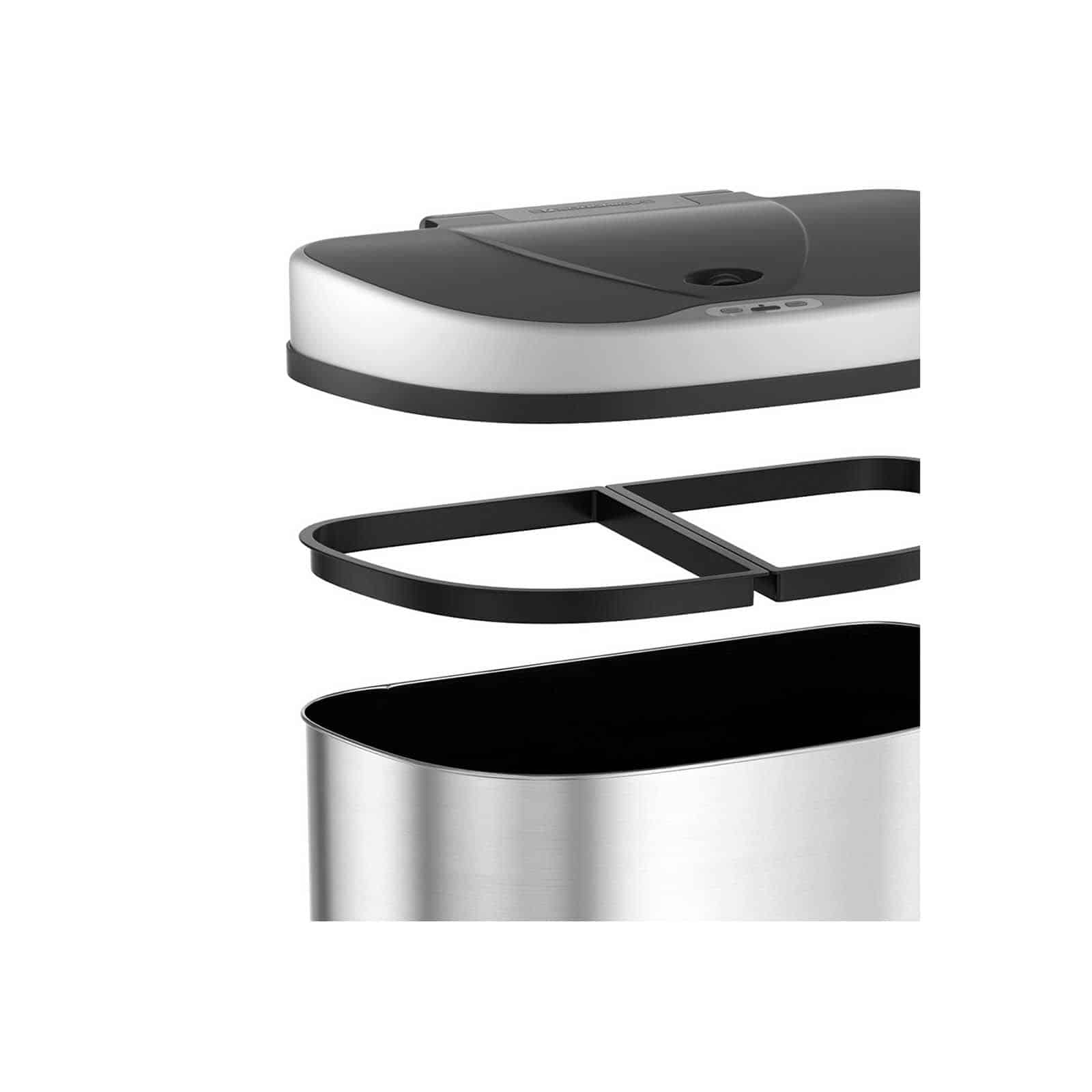 SONGMICS šiukšliadėžė su jutikliu 70L užtikrina didesnę higieną, nes leidžia išmesti šiukšles neprisilietus prie šiukšliadėžės. Du skyriai su užveržimo žiedais padeda atskirti įvairių rūšių atliekas; kiekviename skyriuje telpa iki 35 litrų. Dėl didelės talpos jums nereikia dažnai keisti šiukšliadėžės įdėklo.