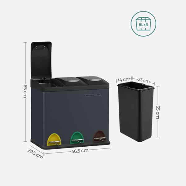 - Atskiri skyriai: Leidžia laikyti šiukšles, surūšiuotas pagal medžiagas.